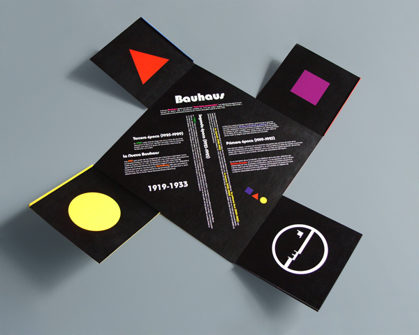 It wasn’t until the summer of 1923 when a poster was made for the school of Bauhaus that intrigued others to notice the unique typeset and design. Effective visual communication was a main focus when designing. You will see a balanced layout, vibrant colors, harmony, geometric shapes strong bars, bold and universal type. Using upper case or lower case fonts, but not a combination of the two, the typeset was clear and concise. The type was laid out in various ways. In addition to being horizontal and vertical orientation, Bauhaus is well-known for placing text at angles and also wrapping text around objects.