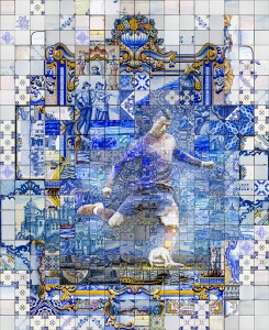 This is the seventh of a series of mosaic illustrations based on the great tradition of Azulejos. This 5 centuries old form of tile painting art is a typical part of Portugues (Spanish and Latin) tradition. I am experiment with these treasures for long time. This is one of the first artworks based on the studies. A portrait of Cristiano Ronaldo, probably the biggest popular hero of contemporary Portugal and one of my favorite athletes. This guys is not just an incredible soccer player. He’s is much more than this. He’s an artist, a show man, a working class hero, a role model, a hard working entrepreneur…