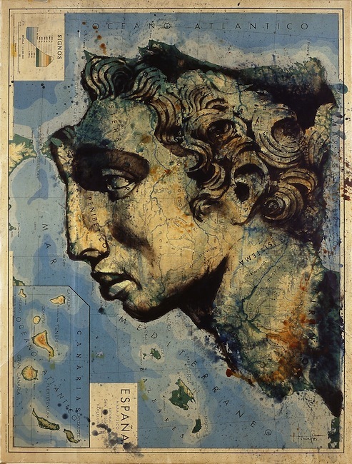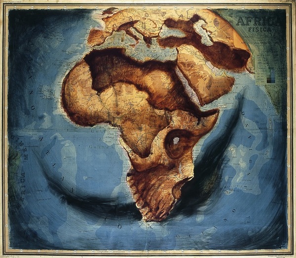 Fernando Vicente an illustrator from Madrid, has been developing his style of combining illustration with painting since the early 80′s. I have selected the themes of Atlas Illustrations as those captured my mind. His images are innovative and real striking. Fernando with a symbolic way illustrates human and animal forms onto the countries and continents of a map. Map are becoming living creatures conveying a message for each one.