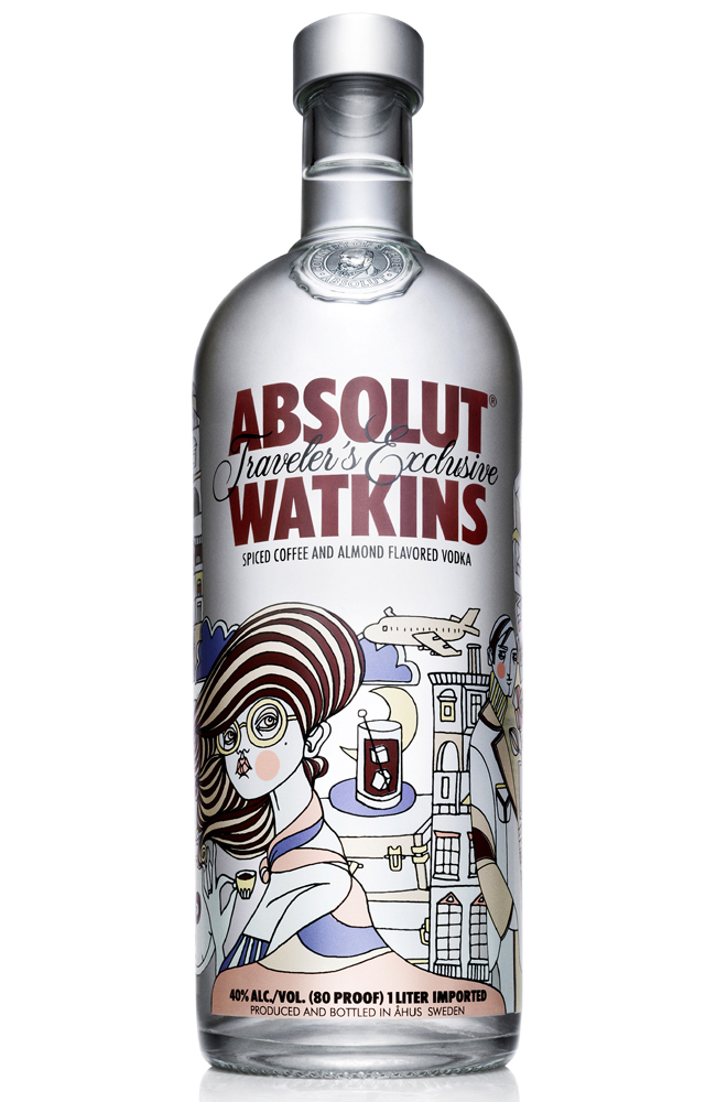 Absolut has unveiled at the World Exhibition in Cannes TFWA its latest limited edition Absolut Watkins, created exclusively for travelers worldwide. The bottle design is signed Liselotte Watkins, the famous Swedish artist and fashion illustrator. The limited edition Absolut Watkins will be launched in duty free, from January 2011 and flavored with a spicy mix of coffee and almond.