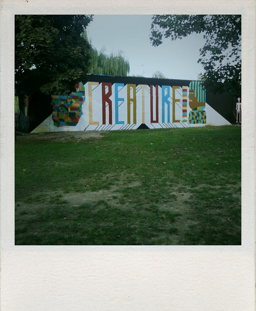 Geometric Bang developed his art from the geometry, his drawings are dominated by two-dimensional creatures and colorful treatment voluntarily infant. In addition to his art, he devoted himself to graphic design and production of T-shirts, badges and self-produced fanzines. Often collaborating with international artists, they consider art and graffiti as a way to create new knowledge and enrich its culture.
