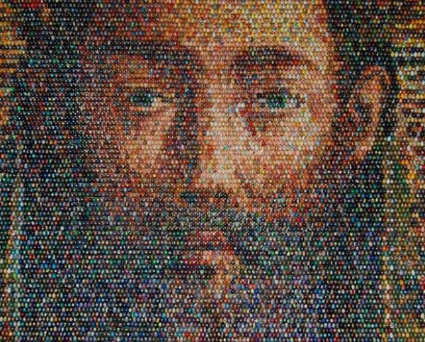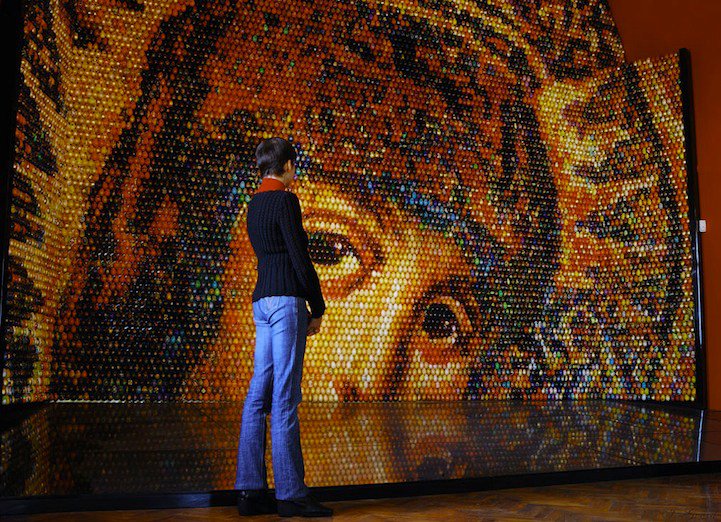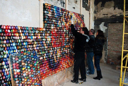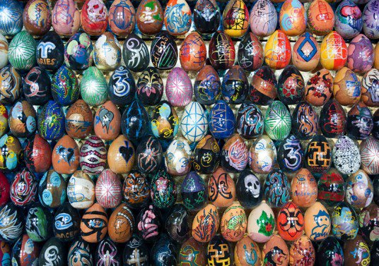 Oksana Masis an Ukrainian artist who uses eggs out of wooden painted with the hand to assemble incredible mosaics. Recently contacted to take part in the Biennale de Venise, its works can be made up of several thousands of eggs, all painted with the hand.