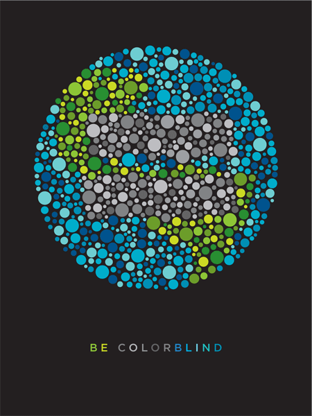 An anti-racism poster designed for START SOMA world tour that uses the color blind test as a metaphor.