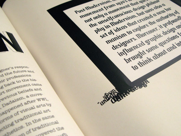 A book designed with Krist’s research about the Postmodernist Graphic Design movement.