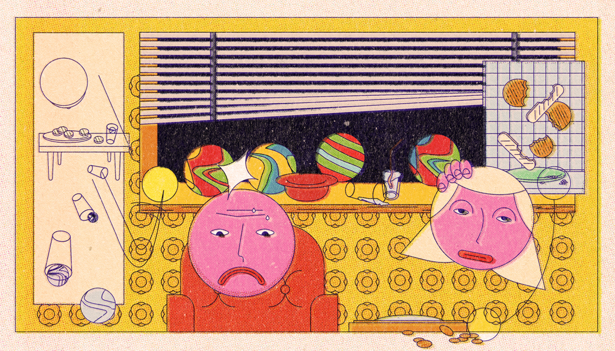 Rafał Kwiczor lives in Warsaw and illustrates as a freelancer. He builds complicated narratives, based on movement, in which one must discover the element that drives the whole. A game from the 90’s – The Even More Incredible Machine perfectly reflects Rafał’s illustrations, the way he acts and how he creates his closed, sad, nostalgic and even depressing world, filled with embarrassing heads in outdated hairstyles.