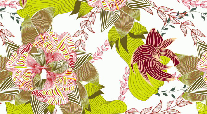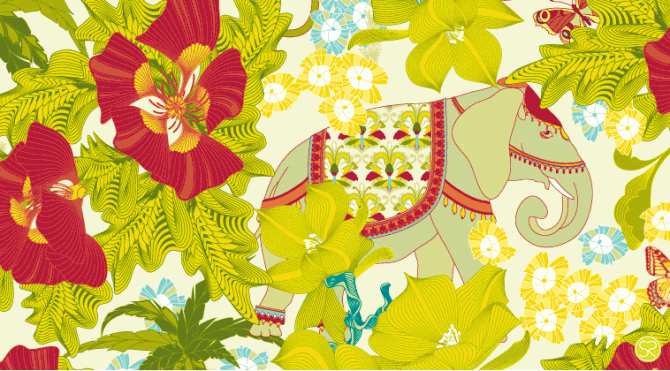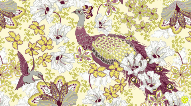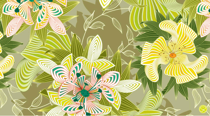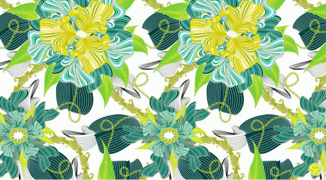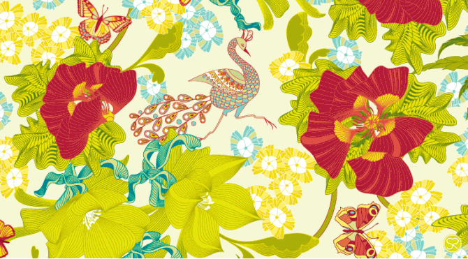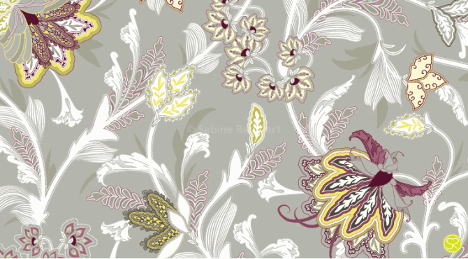 Sabine Reinhart graduated with a First Honours Degree in Graphic Design, specialising in illustration and web design, from Fachhochschule Duesseldorf. After graduation she worked as an art director in Germany and Switzerland, designing and realizing internet and brand presences. Since fulfilling her dream and becoming freelance she has worked on many commissioned projects designing for interior, textiles, greeting card and gift wrap industries. Sabine also runs the pattern related websites Patterrific and Floralcy where she offers some of her patterns. Sabine’s style is very much influenced by different cultures and nature from all over the world. She often stayed abroad and worked as a flight attendant to be able to pay university fees.
