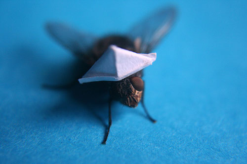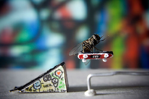 Belgian photographer Nicholas Hendrickx answered to us. He had this wonderful idea! To pose his fly in ordinary human actions.The result? Its fascinating, funny and really interesting.!