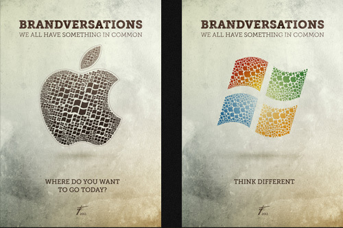 As he says “This project mostly approaches the visual “conversations” between the company logos and the ways that they influence each other, hence the name of the project, Brandversations. It is a parallel between the modern and the old, some of the slogans dating back to the 40s and 50s.”
