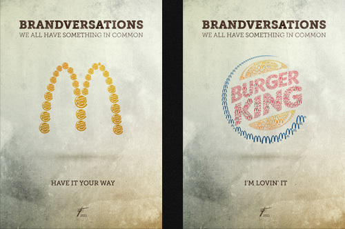 As he says “This project mostly approaches the visual “conversations” between the company logos and the ways that they influence each other, hence the name of the project, Brandversations. It is a parallel between the modern and the old, some of the slogans dating back to the 40s and 50s.”