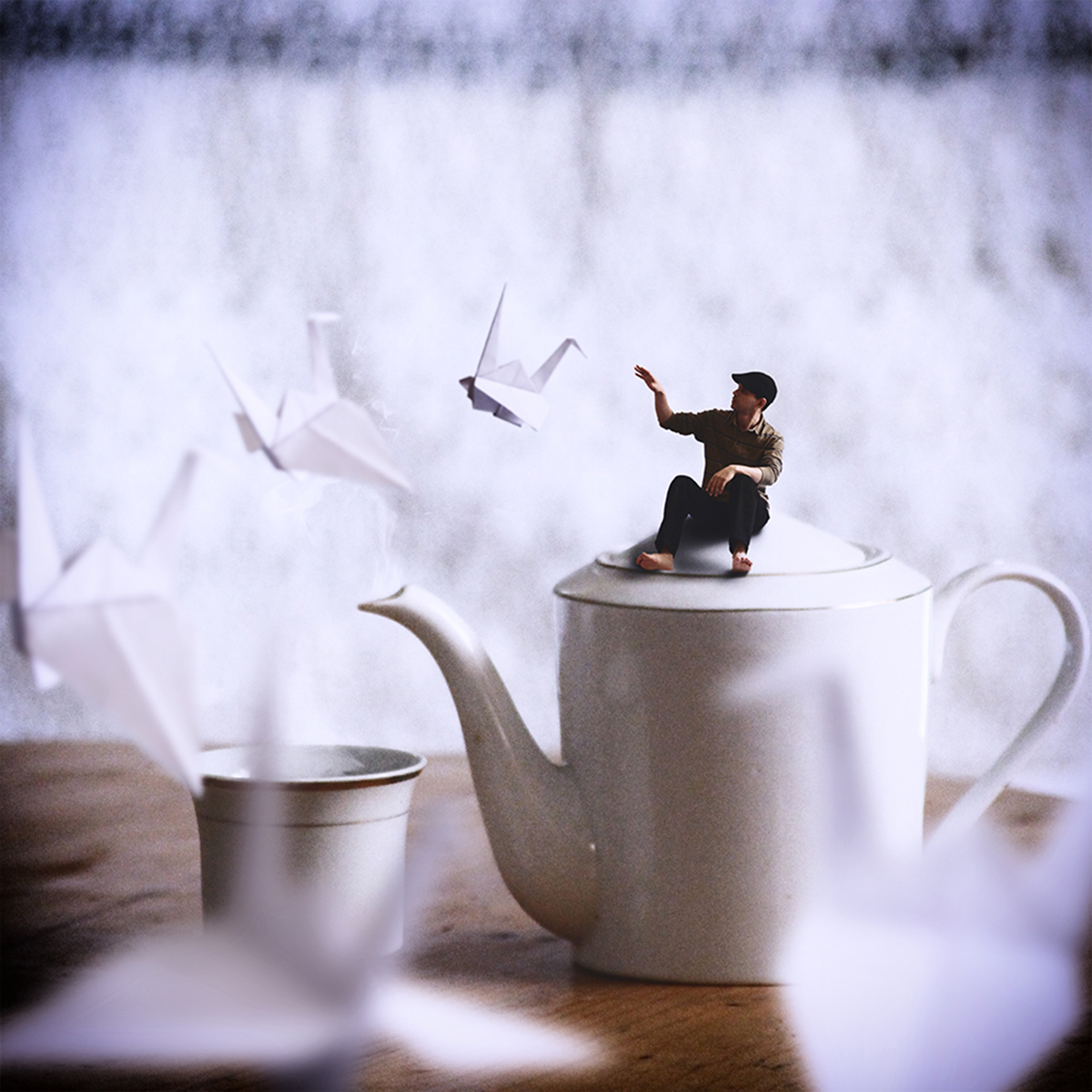 Some of his art and photographs take him as the subject in theme. He often has art that has himself as a miniature human in between regular objects. The art where it shows him standing in the middle of a chess board is an amazing idea that he looks like a knight in there.